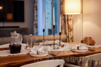 Готовить свои любимые вкусные блюда Вы будете на индукционной варочной поверхности, а запекать в духовке Asko, посудомойка тоже Asko. Огромный холодильник Toshiba с двумя дверцами и двумя широкими морозильными ящиками - это восторг! Микроволновка и измельчитель на раковине швейцарской фирмы Franke дополнительно Вам помогут в готовке.