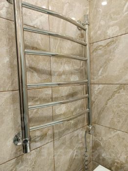 Сан. узел в квартире раздельный. В ванной комнате установлена душевая кабинка, там же находится стиральная машинка, полотенце сушитель в ванной комнате электрический.