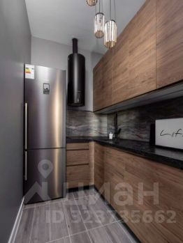 Современная кухня, полностью укомплектованная встроенной техникой и всем необходимым для кулинарных кулинарных шедевров.