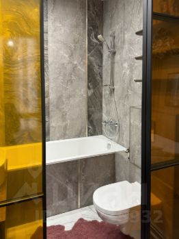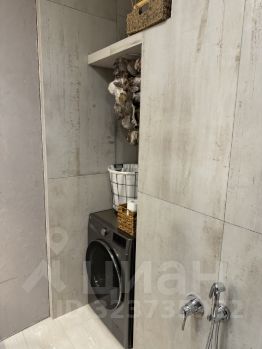 Гостевой туалет с душевой кабиной, теплым полом, стирально-сушильной машиной.