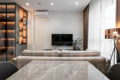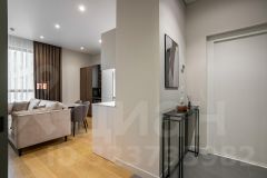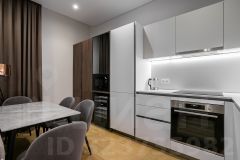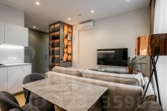 Качественная дизайнерская мебель и вся необходимая новая техника (2 телевизора, кондиционер, варочная панель, духовой шкаф, холодильник, микроволновая печь, винный шкаф, посудомоечная машина, стиральная и сушильная машины, роутер). Предусмотрено много мест для хранения: шкафы в коридоре, кухне, гостиной, спальне.