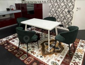 Просторная кухня гостинная, Выделена зона для приготовления пищи и столовая зона
