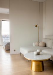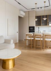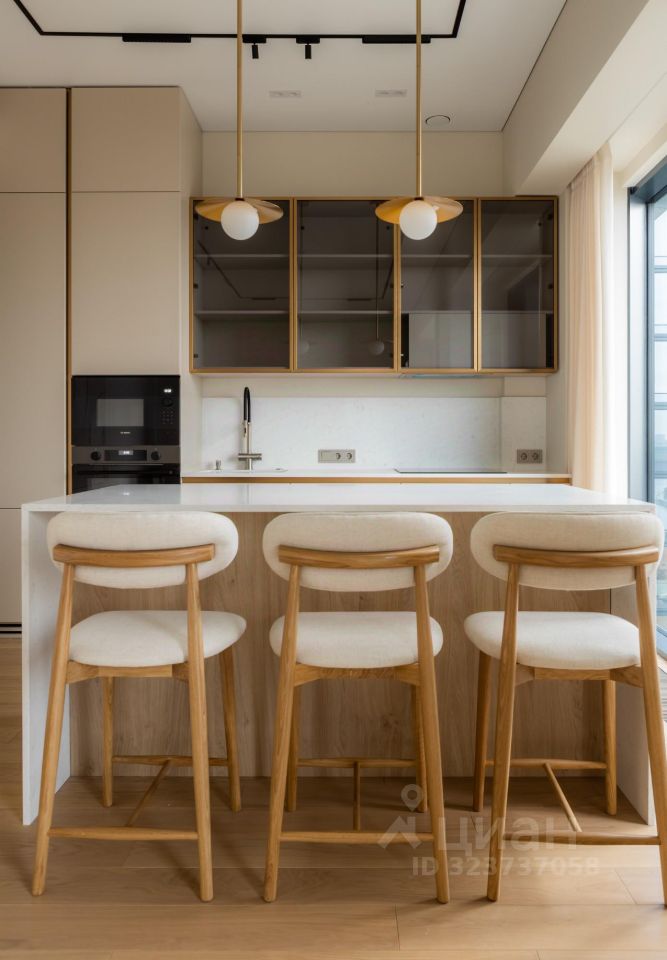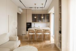 Большое внимание уделено местам хранения, максимальное количество. Полностью укомплектована всей необходимой полноразмерной бытовой техникой. Продуманы различные сценарии освещения в теплой световой температуре.