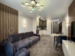 * Современная планировка: просторная кухня-гостиная и изолированная спальня. Совмещенный санузел.