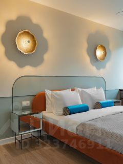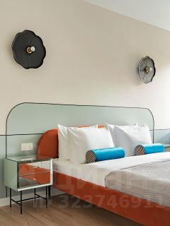 1)зона спальни - удобная кровать 160*200 с качественным матрасом и постельным бельем. Дизайнерские детали, которые радуют глаз - зеркальные тумбочки, настенные бра из Франции,