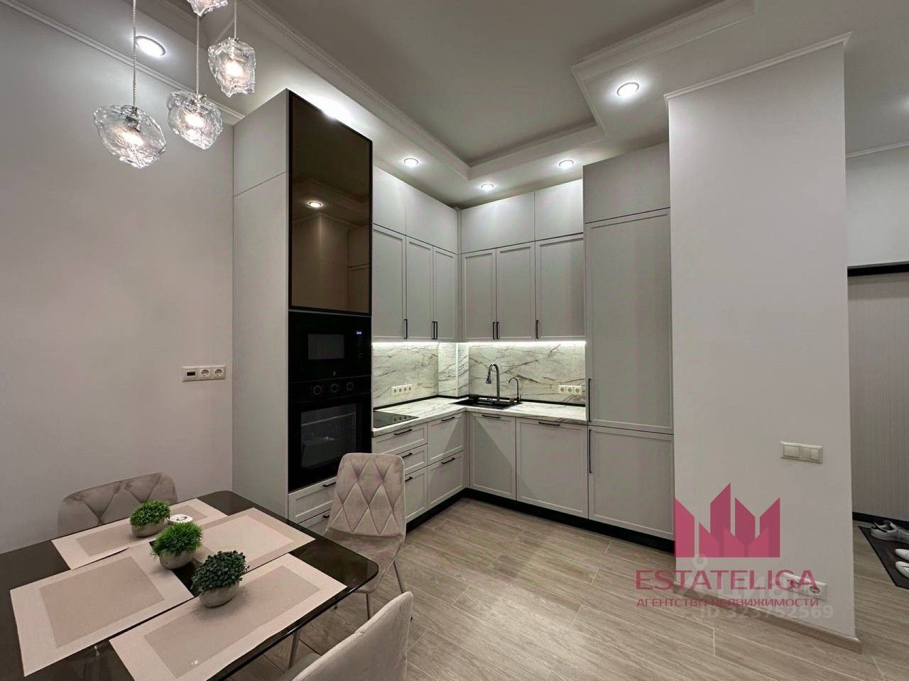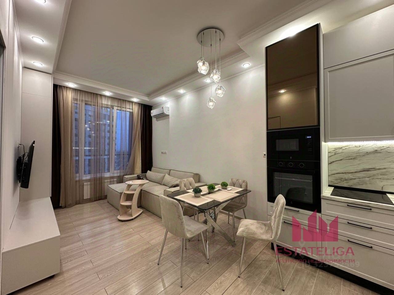 В квартире большая кухня гостиная разделенная на зоны, зону кухни которая полностью укомплектована современной техникой и стильной гарнитурой и зоной отдыха где вы можете насладиться едой и одновременно отвлечься всей семьей. Одна изолированная спальня выполненная в спокойных тонах приятных для глаз, удобная кровать и шкаф который позволит сложить каждую вашу вещь. Совмещенный санузел с душевой кабинкой.