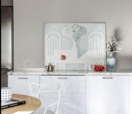 Вы сможете наслаждаться просмотром фильмов на телевизоре Samsung The Frame 55 в формате 4K HDR, который встроен в стену как картина. Вся необходимая современная техника уже есть.