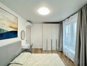 Сдаётся в аренду современная двухкомнатная квартира с хорошим ремонтом в шаговой доступности от метро. Общая площадь квартиры — 48 кв. м, из них 18 кв. м занимает жилая площадь и 17 кв. м — кухня. Квартира расположена на 20 этаже 38-этажного дома. Окна выходят как во двор, так и на улицу, обеспечивая прекрасный вид и естественное освещение.