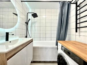В квартире есть всё необходимое для комфортного проживания. Вся мебель и техника новая, раньше никто не проживал. Просторная кухня полностью меблирована, оснащена современной техникой: кондиционером, холодильником, измельчителем пищевых отходов, посудомоечной и стиральной машиной. В комнате также есть мебель и телевизор. Санузел оборудован ванной, поэтому можно расслабиться после насыщенного дня.