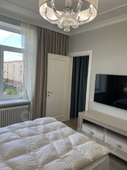 Планировка включает в себя одну спальную комнату с двухспальной кроватью с дорогим ортопедическим матрасом, гардеробную, гостиную комнату с балконом, функциональную кухню с импортной техникой.