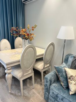 Квартира полностью меблирована и оборудована современной техникой. Натуральное дерево в отделке, мрамор, мебель ручной работы, премиальная сантехника!
