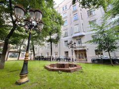 ID 13988. Роскошная 6-ти комнатная квартира в дореволюционном особняке в самом центре Москвы - в Романовом переулке. В квартире делают современный авторский ремонт из дорогих и качественных материалов. Полная комплектация бытовой техникой. Предлагается без мебели. Установлен кондиционер, теплые полы, дровяной камин. Функциональная планировка: общая площадь 320 кв.м., гостиная, кухня, 3 спальни, 3 ванные комнаты, кабинет, детская комната. Окна выходят на 3 стороны, высота потолков больше 3-х метров. В доме работает круглосуточная охрана, в подъезде установлен домофон. Охраняемое парковочное место во дворе дома входит в стоимость. В ближайшем доступе: кафе, магазины, рестораны, бары, магазины, салоны красоты, музеи, театры и галереи. Можно с детьми. Можно с животными.
