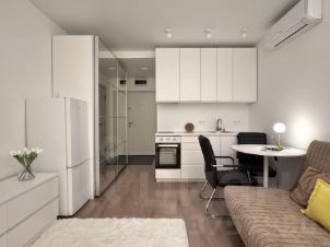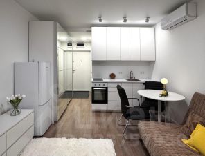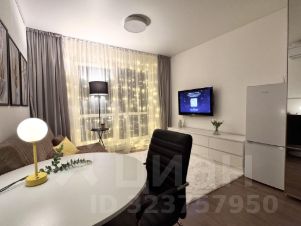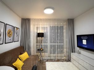 В квартире сделан стильный евроремонт. Пространство организовано функционально: есть все необходимое для комфортного проживания. Кухня оборудована современной мебелью и техникой, включая холодильник и посудомоечную машину. В комнате также есть мебель и телевизор. Санузел совмещённый, с душевой кабиной и стиральной машиной. Окна выходят на улицу, поэтому в квартире всегда светло.
