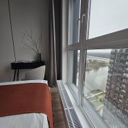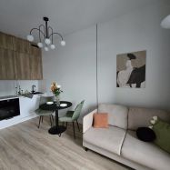 Квартира радует евроремонтом и продуманной обстановкой. В комнате и на кухне есть необходимая мебель, а также вся необходимая техника: холодильник, посудомоечная машина, телевизор и стиральная машина. Совмещенный санузел оснащен ванной, что обеспечивает комфорт после долгого дня. Окна выходят во двор, поэтому в квартире всегда тихо и спокойно.