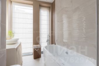 Ванная комната с окнами, душевая кабина, ванная спа-плюс, стиральная машина, теплая стена для подогрева халатов и полотенец, система от протечек.