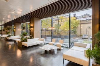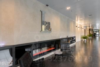 Презентабельная входная группа. Ресепшн, большая лаунж-зона с камином.