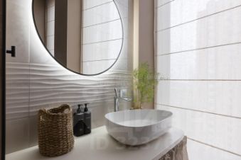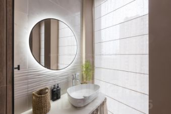 Ванная комната с окнами, душевая кабина, ванная спа-плюс, стиральная машина, теплая стена для подогрева халатов и полотенец, система от протечек.