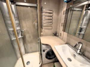 21/22 этажного, общей площадью 80,5м2, просторной кухней 12м2, жилые комнаты: гостинная 20м2, комната 15м2, мастер спальня 14м2 с гардеробной, высота потолков 2,7, санузел раздельный. На полу в комнатах паркет, в коридоре и кухне керамогранит, окна выходят во двор стеклопакеты, балкон остеклен.