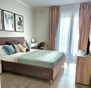 Полный дизайнерский ремонт. Новая гарнитурная мебель, вся необходимая бытовая техника. Гостиная с раскладным диваном и рабочим столом, спальня с выходом на лоджию. Просторная кухня, необходимая бытовая техника: плита с духовым шкафом, вытяжка, посудомоечная машинка, холодильник, необходимый набор посуды и столовых принадлежностей. СУР установлена стиральная машинка. Оборудована прихожая.