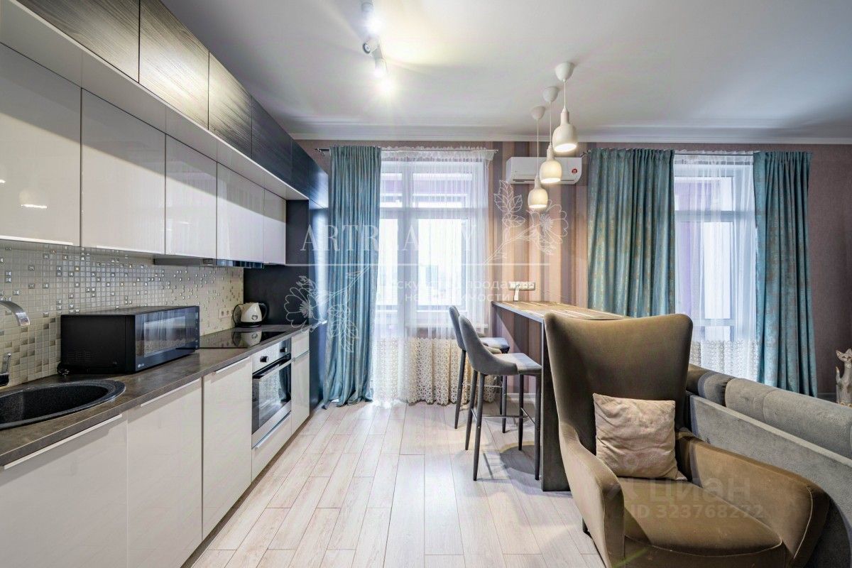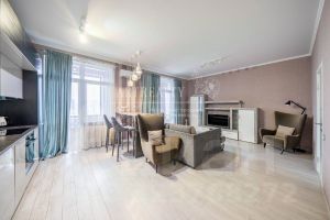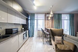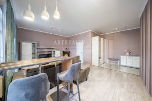 Высокие потолки - 3 м. Ремонт - дизайнерский с применением материалов премиум класса.Есть вся необходимая техника, в том числе посудомоечная машинка и кондиционер.Вид с окон - обзорный,в сторону Москва-Сити.
