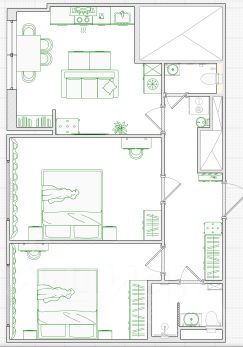 2 двуспальные кровати 180х200, достаточное количество шкафов и мест для хранения