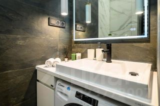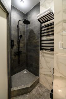 Санузел: душ с дождевой лейкой и термостатическим смесителем, стиральная машина. На период отключения горячей воды есть бойлер.
