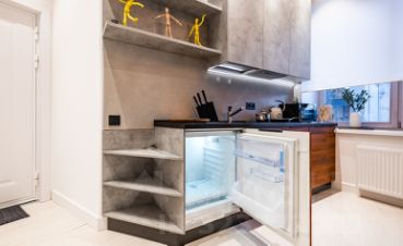 - плита, микроволновка, вытяжка, чайник, холодильник;