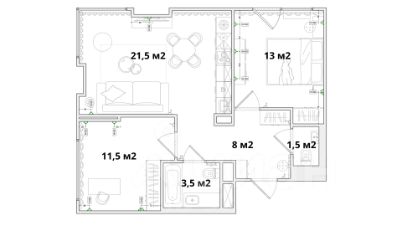 Просторная евротрешка в современном ЖК