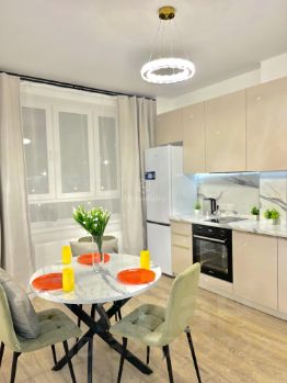 Квартира распашонка с удобной и продуманной планировкой общей площадью 53 м. Просторная кухня-гостиная с диваном-кроватью. Отдельная комната и совмещённый санузел. Имеется вся необходимая бытовая техника и мебель.