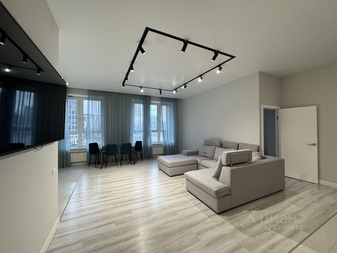 Ремонт в светлых тонах, огромная гостиная с функциональной кухонной зоной - много места и воздуха, мебель и встроенная техника - полностью готовы к проживанию.