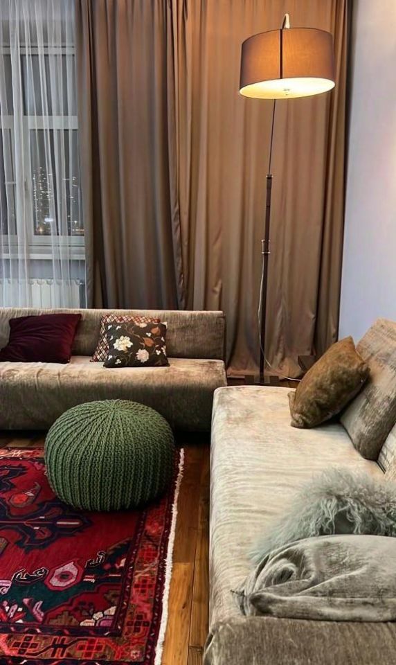 Дорогая удобная мебель, пол массив дерева, кухня оборудована немецкой техникой, включая винный шкаф.