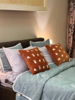 Планировка квартиры: просторная гостиная, спальня со своим санузлом и гардеробной, кухня 15 кв.м с выходом на большую застекленную лоджию, 2 санузла. В санузлах ванна, душевая кабина, биде.