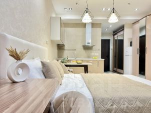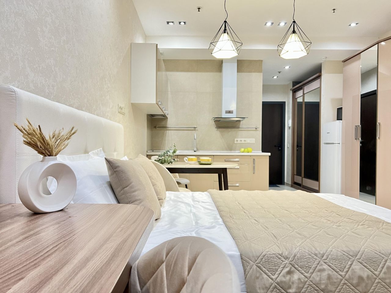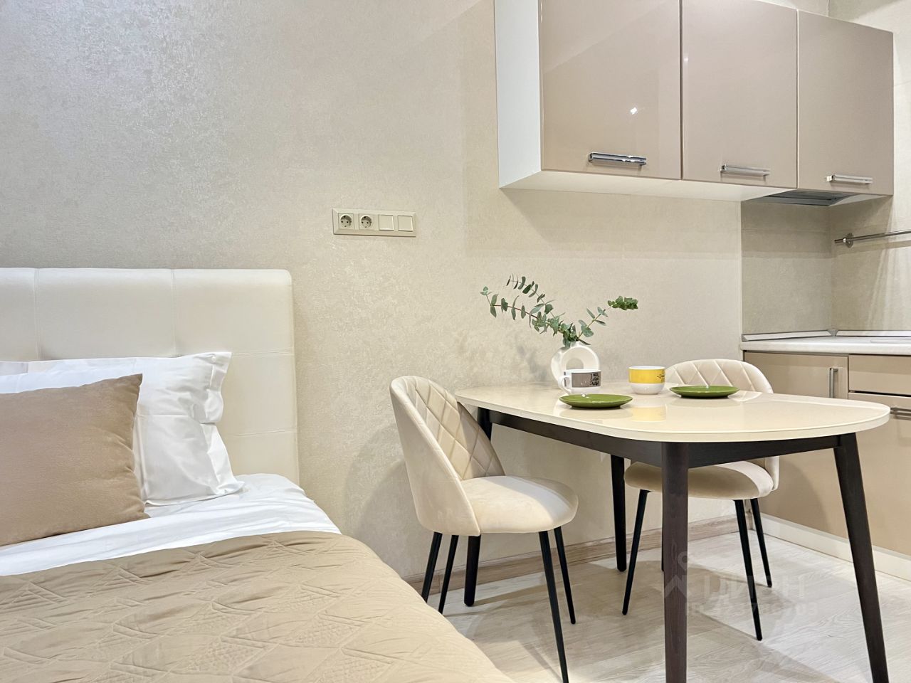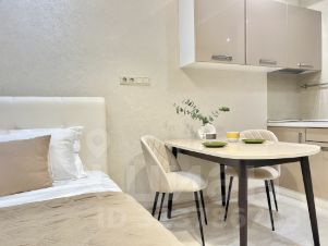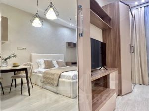 Студия имеет эргономичный планировку и укомплектована всей необходимой мебелью и техникой для комфортного проживания.