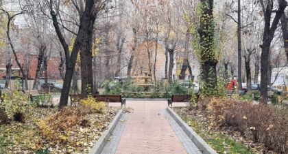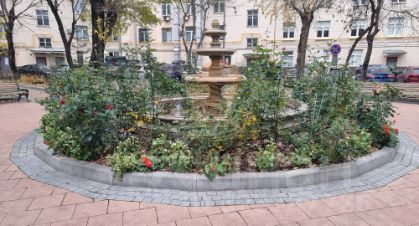 Во дворе дома, летом, действующий фонтан! Рядом большая детская площадка.