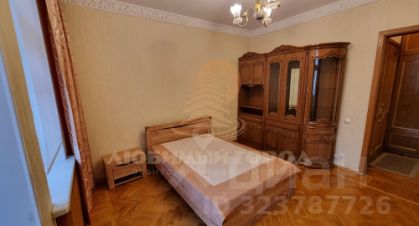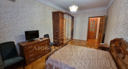 Комната 14 кв.м.: двуспальная кровать, сервант, кондиционер, выход на балкон (застеклён), окна во двор.