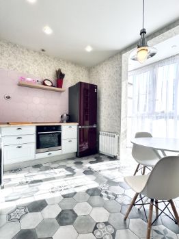 Квартира очень светлая и уютная с дизайнерским ремонтом. Имеется вся необходимая мебель и техника для вашего комфортного проживания, так же теплые полы и бойлер для нагрева воды. Окна панорамные, выходят во двор. Рядом с домом детский сад, вблизи школа и сетевые магазины, кафе, пункты выдачи. Двор закрытый с детской площадкой.