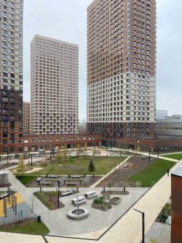 закрытый двор-парк с концепцией "Двор без машин" где тихо и уютно, и много зелени.