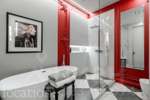 - Мастер блок: спальня с двумя окнами во внутренний двор, проходная гардеробная комната, свой санузел с ванной и душевой кабиной.
