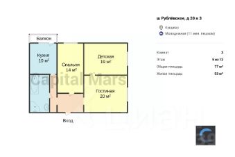 Предлагается уютная квартира в 10-11 минутах ходьбы от метро "Молодежная". Планировка включает спальню, лаконичную гостиную и яркую детскую. Комнаты укомплектованы вместительными шкафами для хранения вещей. Кухня оснащена всей необходимой техникой, включая посудомоечную машину и духовую печь. Сплит-система и теплые полы обеспечивают комфортный микроклимат. Окна обращены во двор.