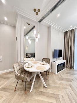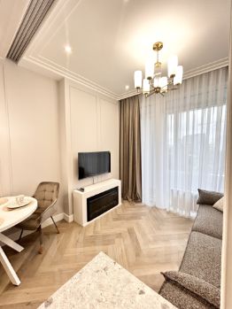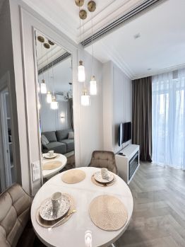 Сдается впервые евродвушка с изолированной комнатой и гардеробной и кухней-гостиной. Вся мебель и техника новые и современные. В квартире никто не проживал, современный дизайнерский ремонт в новом доме с функциональным шикарным лобби. В квартире есть всё необходимое для того, чтобы чувствовать себя комфортно и уютно: два кондиционера, два телевизора, посудомоечная машина, стиральная машина, духовой шкаф, микроволновая печь, чайник, варочная панель, холодильник, стиральная машинка, фен, робот-пылесос, в гардеробной есть гладильная доска и утюг, в гостиной камин с функцией обогрева, балкон с теплыми полами, где все обустроено под рабочее место. Есть придомовая территория - уютный закрытый двор; подземный паркинг и наземная парковка. В квартире установлен видео-домофон со связью с консьержем и всеми входными калитками. Самая лучшая служба консьержа в ЖК Символ. На территории жилого комплекса есть свой парк для прогулок и занятия спортом, а также вся инфраструктура: магазины, спортивные залы, пункты выдачи, рестораны и кафе, аптеки