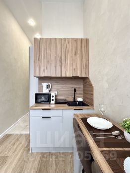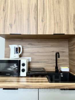 Оборудованная мини-кухня (холодильник, варочная панель, микроволновая печь, электрический чайник).