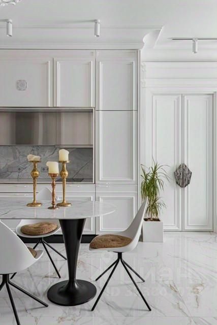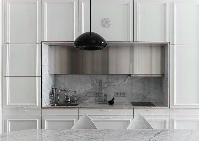Гостиная и столовая объединены, кухня открытая - является частью классической экспозиции гостиной.