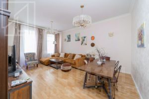 Планировка: гостиная, кухня, 4 спальни, 2 совмещенных санузла. Потолки 3м. Квартира полностью меблирована и оснащена всей необходимой техникой.
