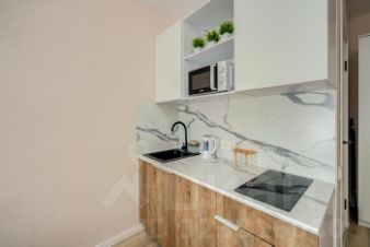 - Оборудованная мини-кухня (холодильник, варочная панель, микроволновая печь, электрический чайник).
