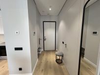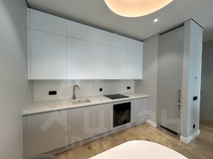 Кухня полностью укомплектована встроенной бытовой техникой (посудомоечная машина, холодильник, варочная, духовой шкаф, вытяжка).