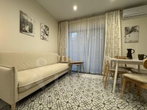 Квартира оформлена в дизайнерском стиле и полностью готова к проживанию. В комнатах и на кухне установлена мебель, поэтому можно сразу заехать и жить. В наличии вся необходимая техника: кондиционер, холодильник, посудомоечная и стиральная машины, телевизор. В квартире два санузла — один совмещенный и один отдельный, в ванной комнате установлена душевая кабина. Окна выходят во двор и на реку, что обеспечивает тишину и спокойствие, а также роскошные закаты.