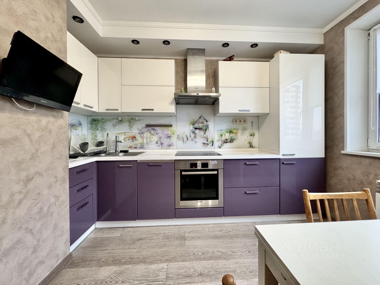 Оснащение: Кондиционеры в гостиной и на кухне, вся техника Bosch (посудомоечная машина, варочная панель и духовой шкаф), застеклённый балкон, раздельный санузел.