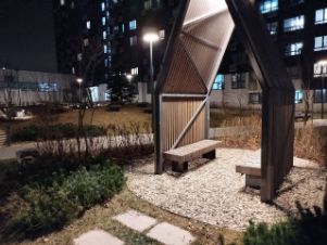 Двор дома свободный от машин, с великолепным ландшафтным дизайном, множеством мест для прогулок и отдыха.