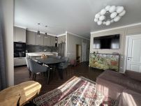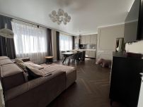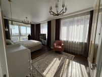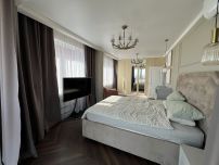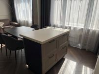 Просторная квартира с грамотно организованным пространством, современный стиль интерьера. В квартире дизайнерская мебель и современная техника для комфортного проживания. Во всех помещениях установлены кондиционеры, много встроенных функциональных шкафов. Два санузла и гардеробная комната, водонагреватель на случай отключения горячей воды.