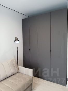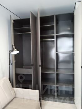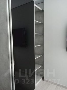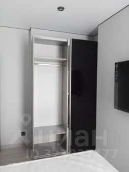 В спальне имеется просторная двуспальная кровать, вместительный гардероб с зеркалом,